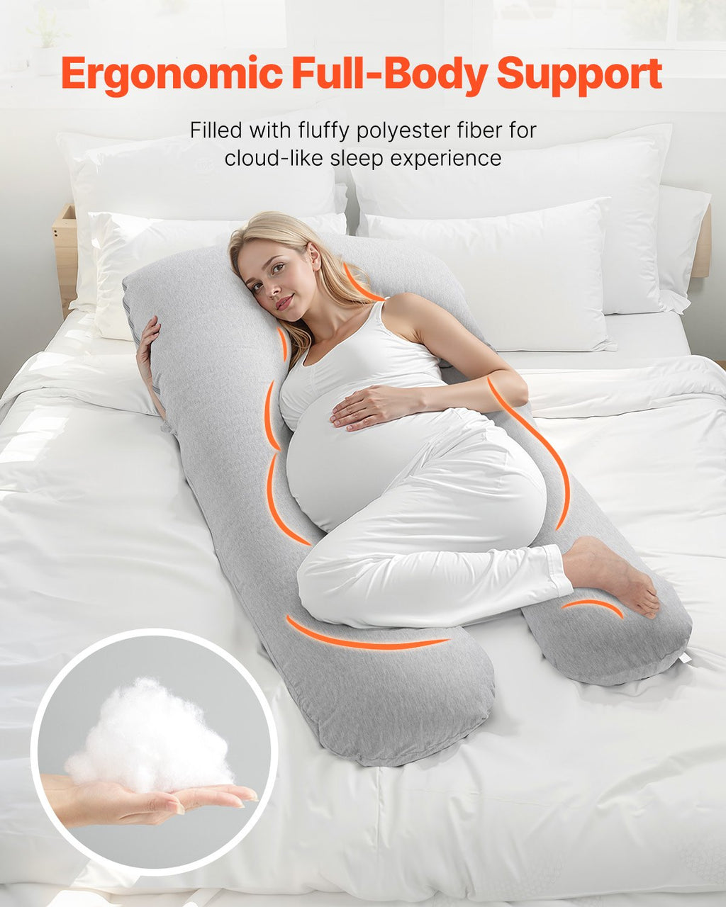 This is a full-body maternity pillow filled with premium polyester fiber for a plush, supportive feel. Many shoppers searching for a memory foam pillow choose this style for its wraparound support and breathable comfort.